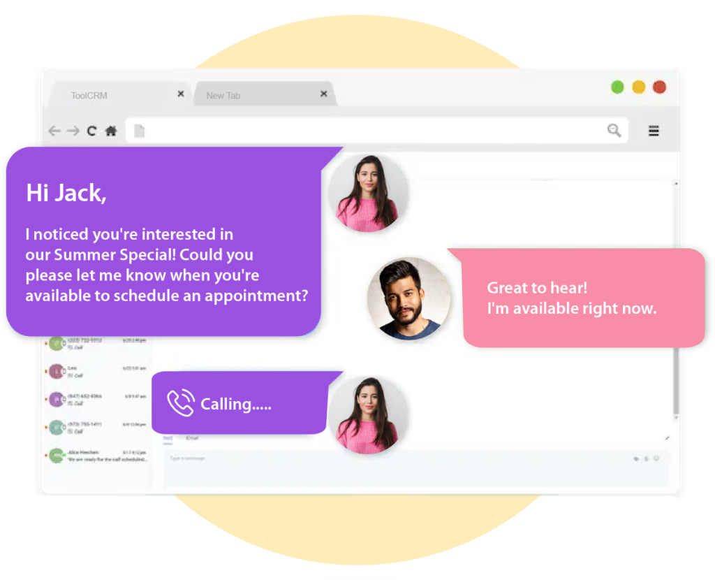 CRMBREVO lets you connect with your leads via phone calls, voicemail drops, SMS/MMS, emails, and even Facebook Messenger.