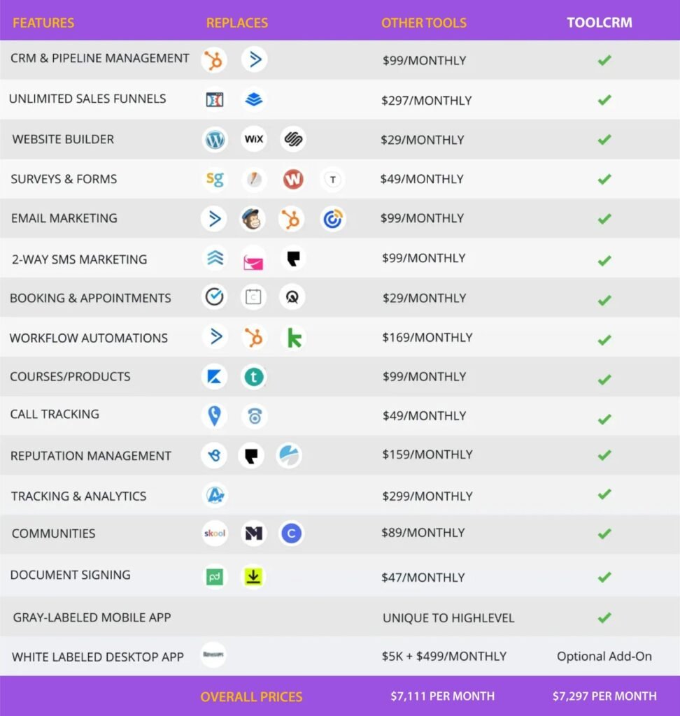 - FULL ONLINE BOOKING, PIPELINES, SOCIAL CAL, WEBSITE BUILDER, AND MORE!